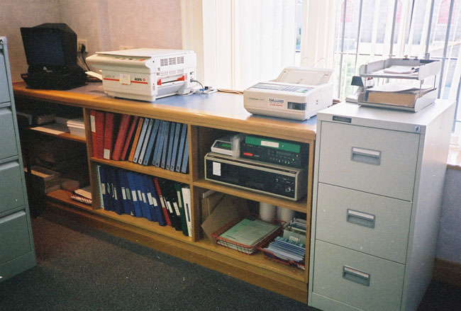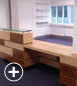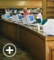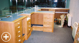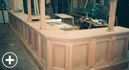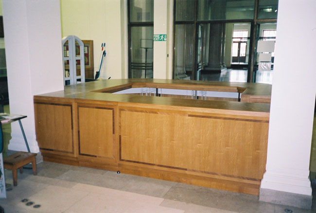 | Built from English oak and beautifully inlayed with walnut, this substantial desk and counter are the main feature of the old style library | ||
