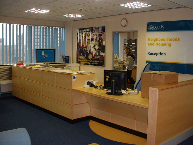 | 3 position reception desk constructed from maple featuring DDA position | ||