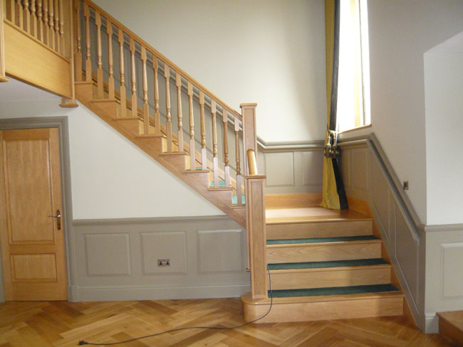 | Manufactured in-house and installed on site this exclusive staircase fulfilled the clients criteria to create a grand entrance hall. | ||